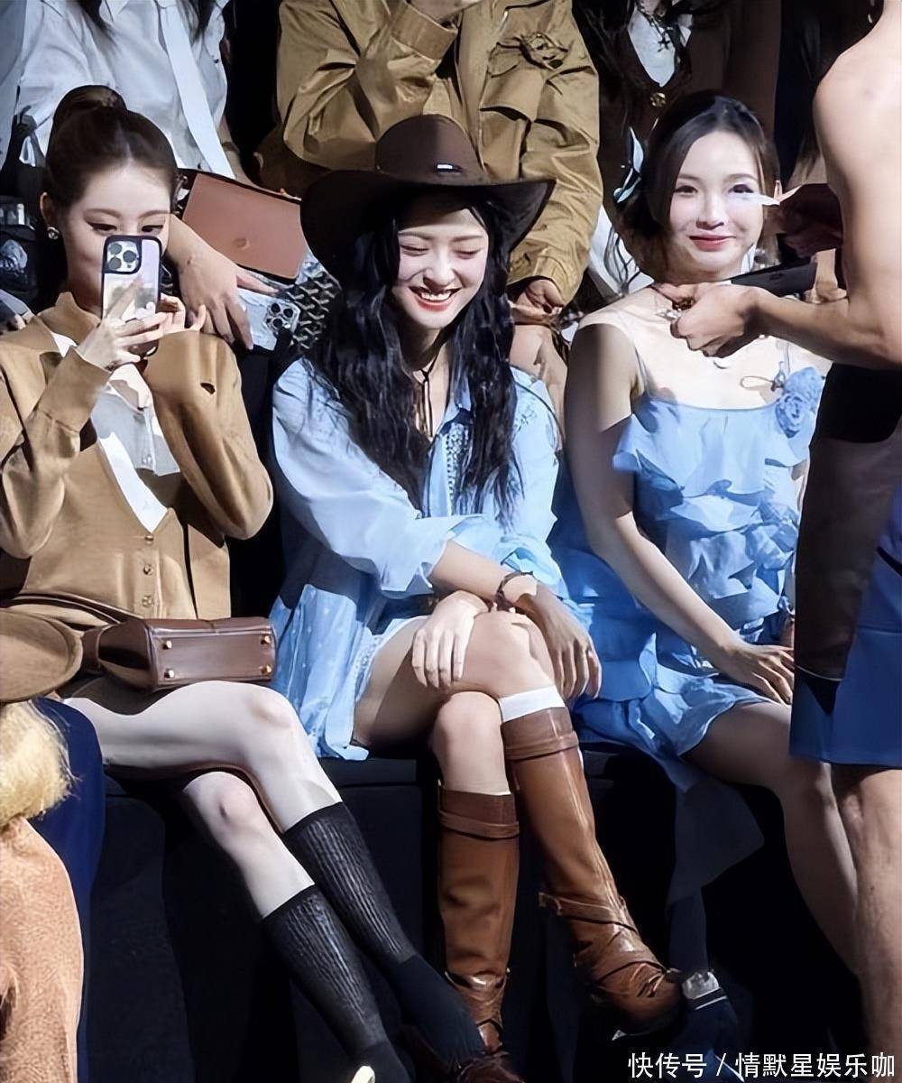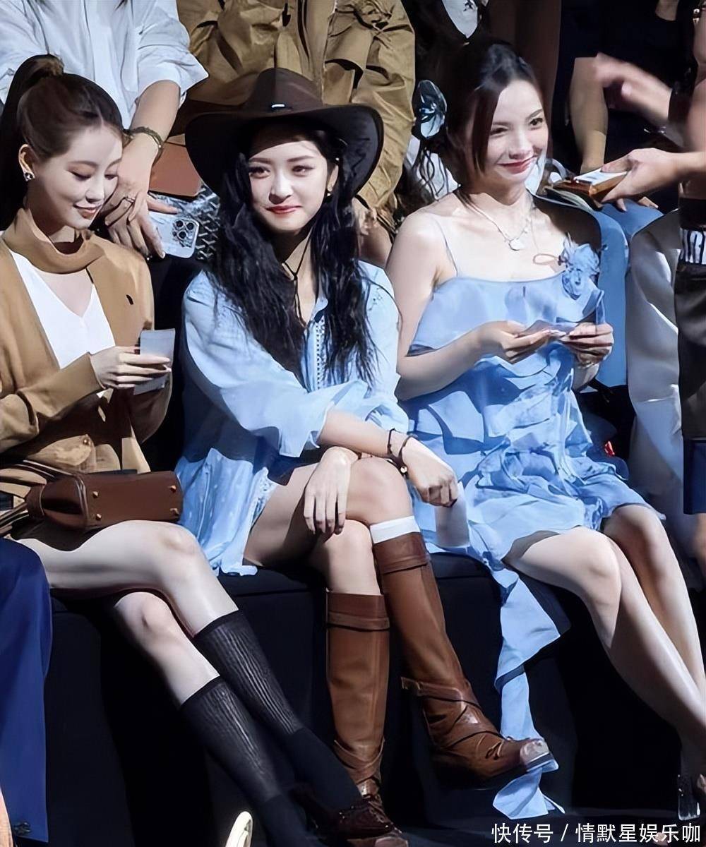 反观祝绪丹的淡定,也不是 “故作高冷”。了解她的人都知道,她平时就属于比较沉稳的性格,之前参加活动不管遇到什么突发情况,都能从容应对。而且她当天的造型本就偏冷冽风格,淡定看秀反而更符合整体气质,那种 “不被外界干扰” 的专注感,也让人觉得很舒服。